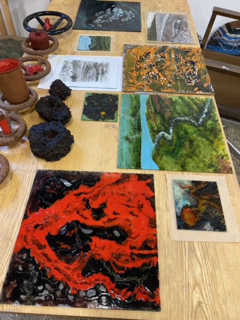 Work in progress in the Fish Factory shared studio. Inspired by the 2021 Geldingadalir eruption that year and the webcam footage.