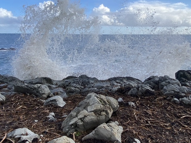 The natural geyser throws up spray and uprooted kelp from the seabed. It’s about 40 minutes east of the Fish Factory.