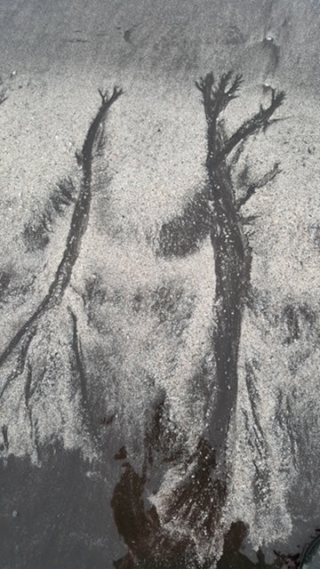 Patterns in the snow-covered black sand.